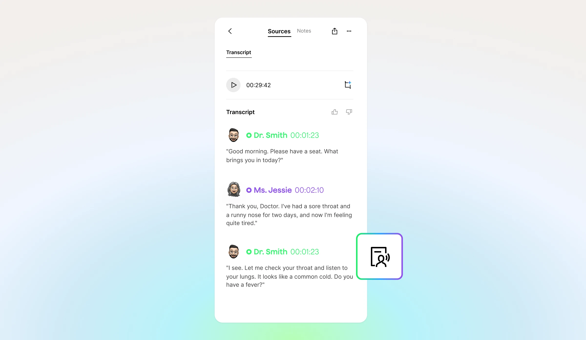 La diarisation de l'IA distingue chaque voix avec précision, clarifiant qui a dit quoi, des préoccupations des patients aux recommandations des prestataires.