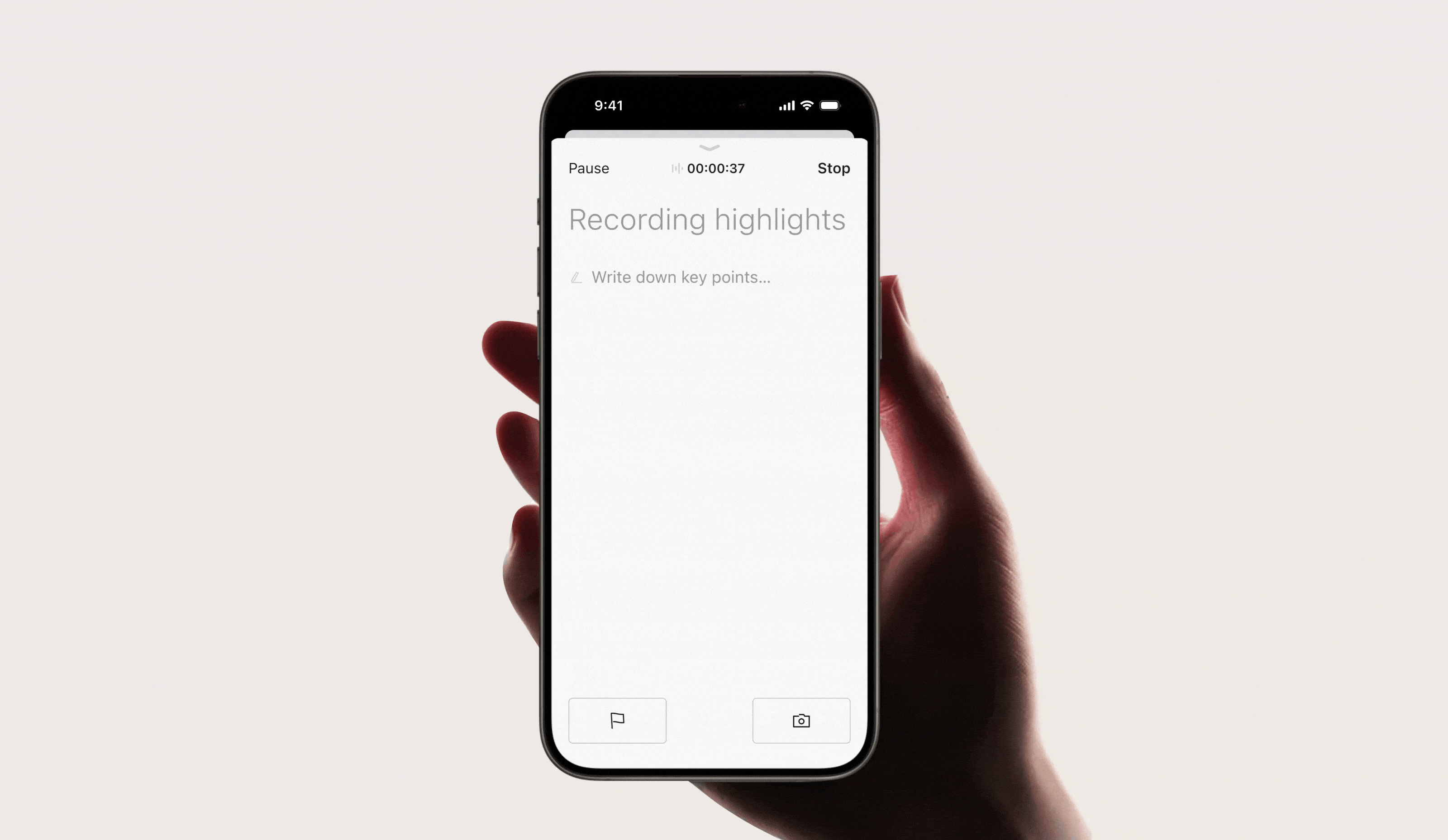Prenez des notes rapides pendant vos tournées ou vos consultations. Plaud intègre chaque idée dans votre chronologie de saisie avec clarté et continuité.