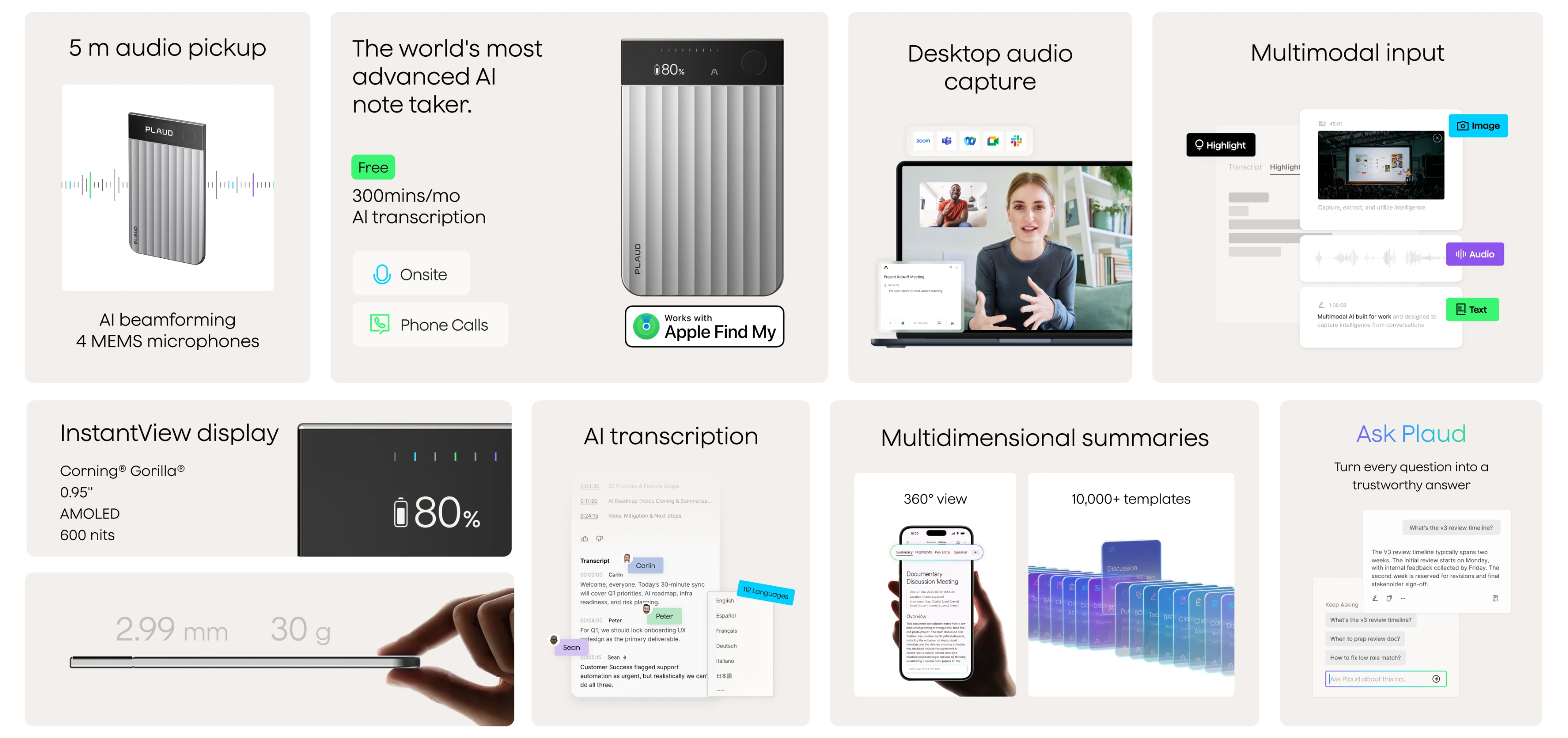 Grâce à la technologie de formation de faisceaux par IA, Plaud Note Pro capture des voix d'une clarté cristalline jusqu'à 5 mètres, préservant ainsi chaque mot dans les moindres détails.