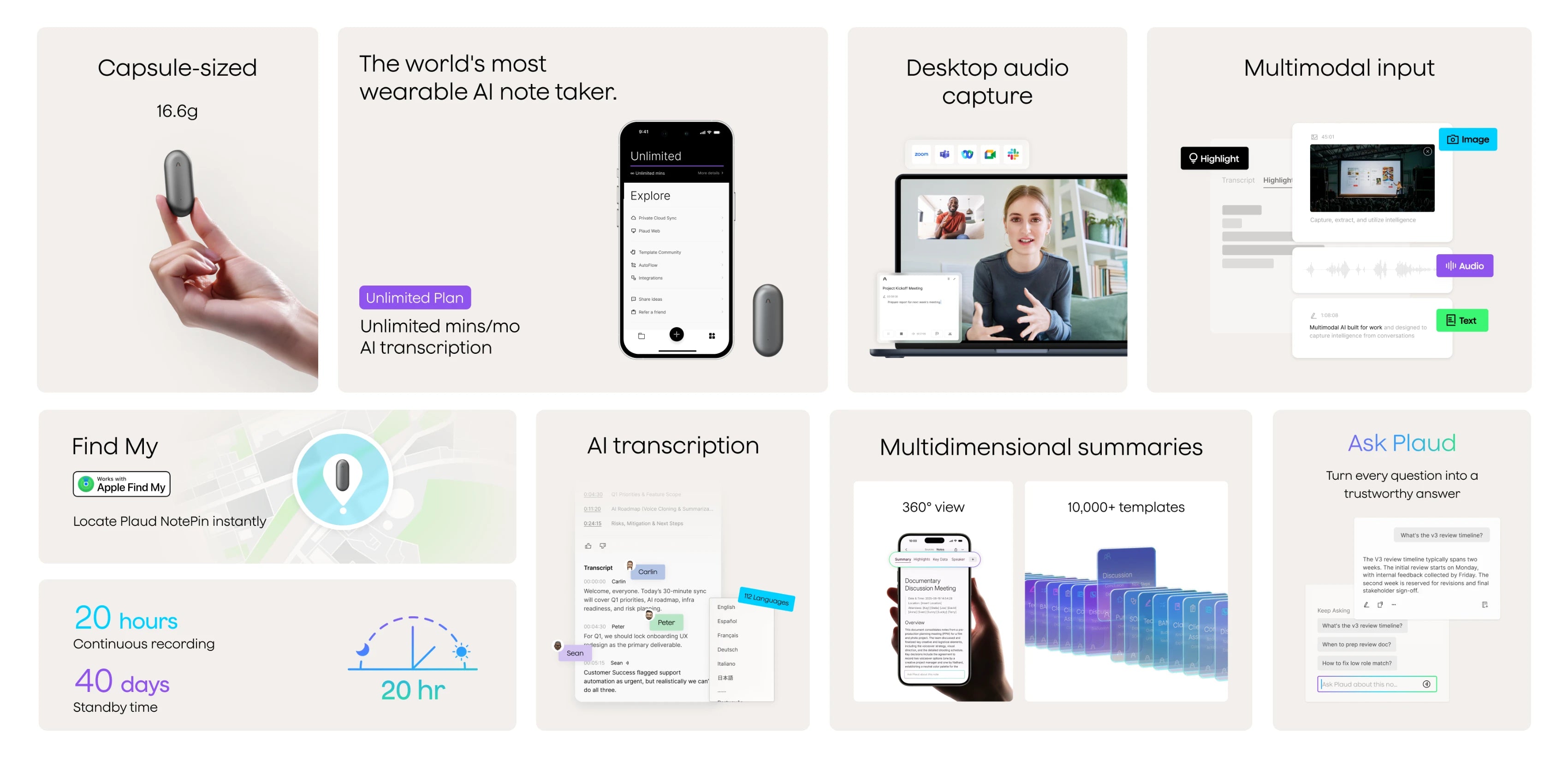 Votre IA nomade est tout ce dont vous avez besoin. Avec sa puissance et son poids équivalent à celui d'une pile AA, le NotePin vous accompagne partout où vous travaillez.