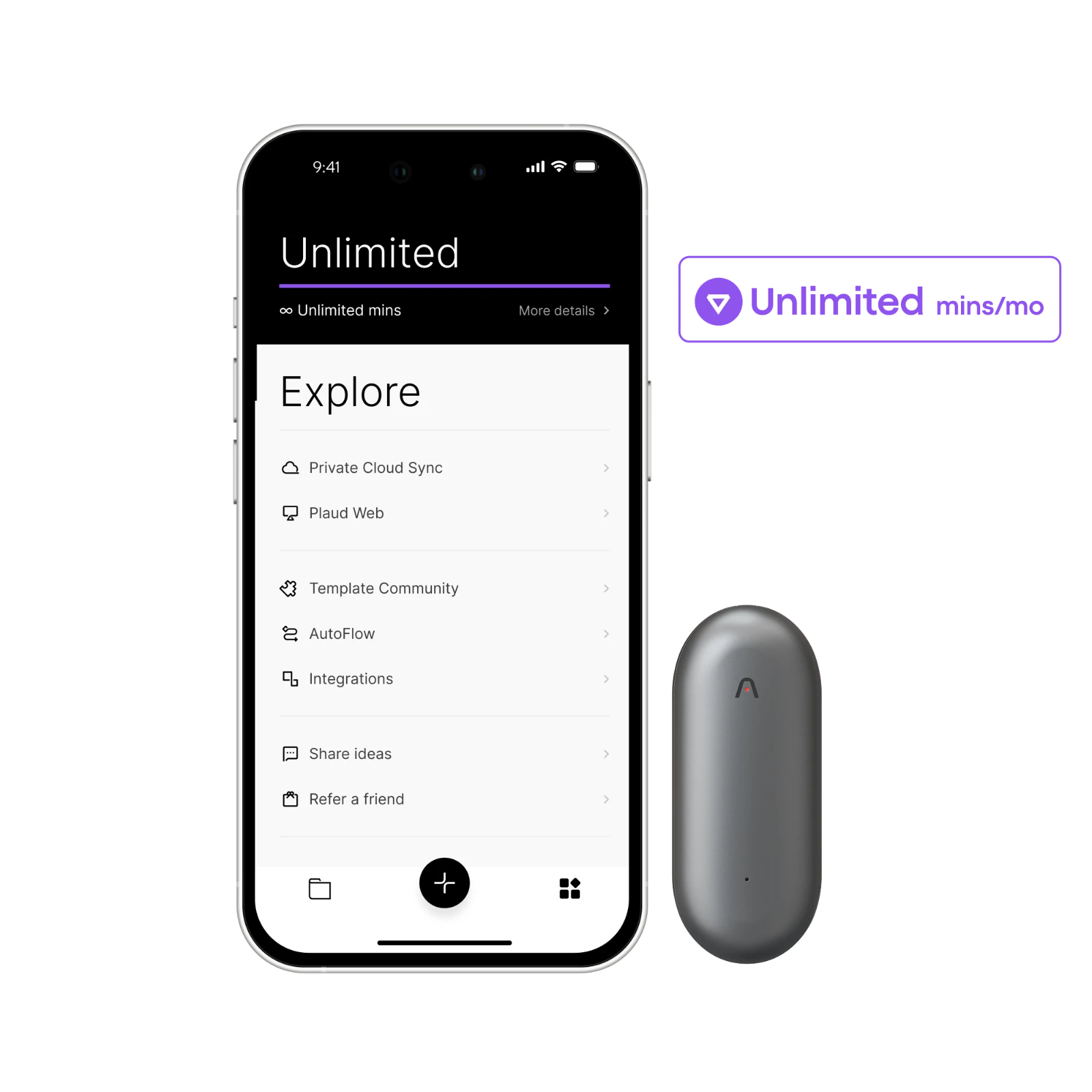 - Seamless integration with Plaud Intelligence for fast transcription, AI summaries, and deep insights