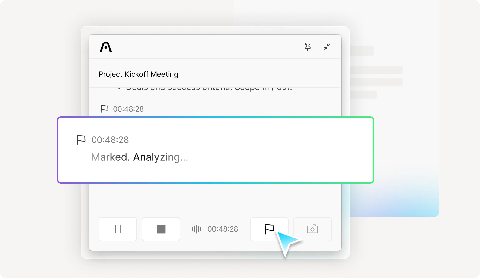 Highlight important audio moments as they happen. Plaud Desktop marks these moments and sends them to the AI as priority cues, keeping your insights accurate, relevant, and aligned with what you care about.