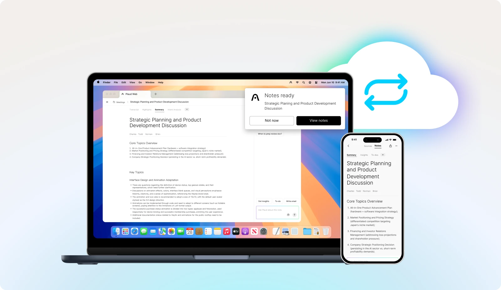 Plaud Desktop captures your meetings natively without adding a bot or joining the call, giving you full control over how and when to record.