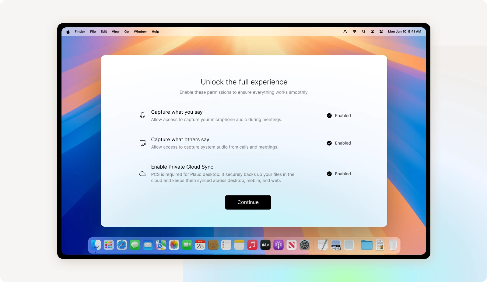 Plaud Desktop guides you through enabling microphone, system, and cloud sync permissions, supporting compliant recording from your very next meeting.