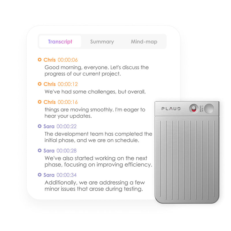 Make eye contact, not taking notesStay completely present in every conversation while Plaud Note delivers professionally formatted interview notes and key takeaways.
