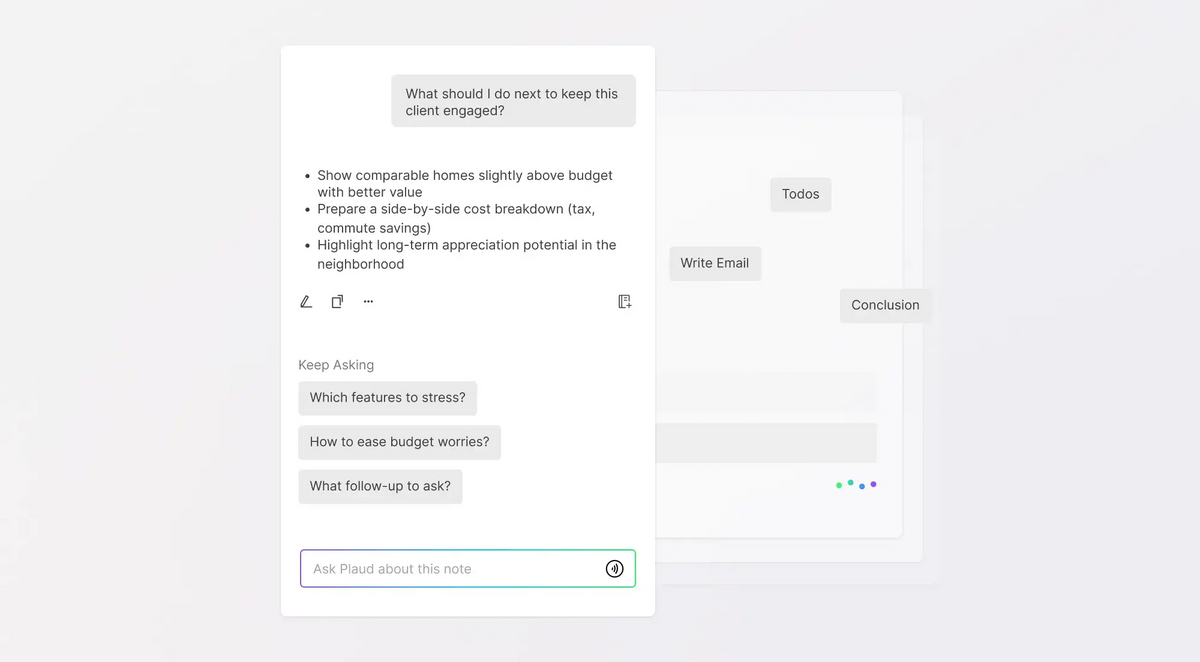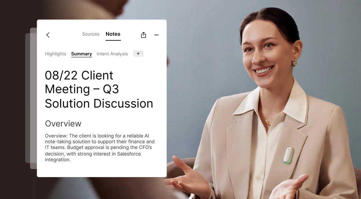 Stay focused in the room while conversations are captured, processed, and structured intelligently with context and nuance.