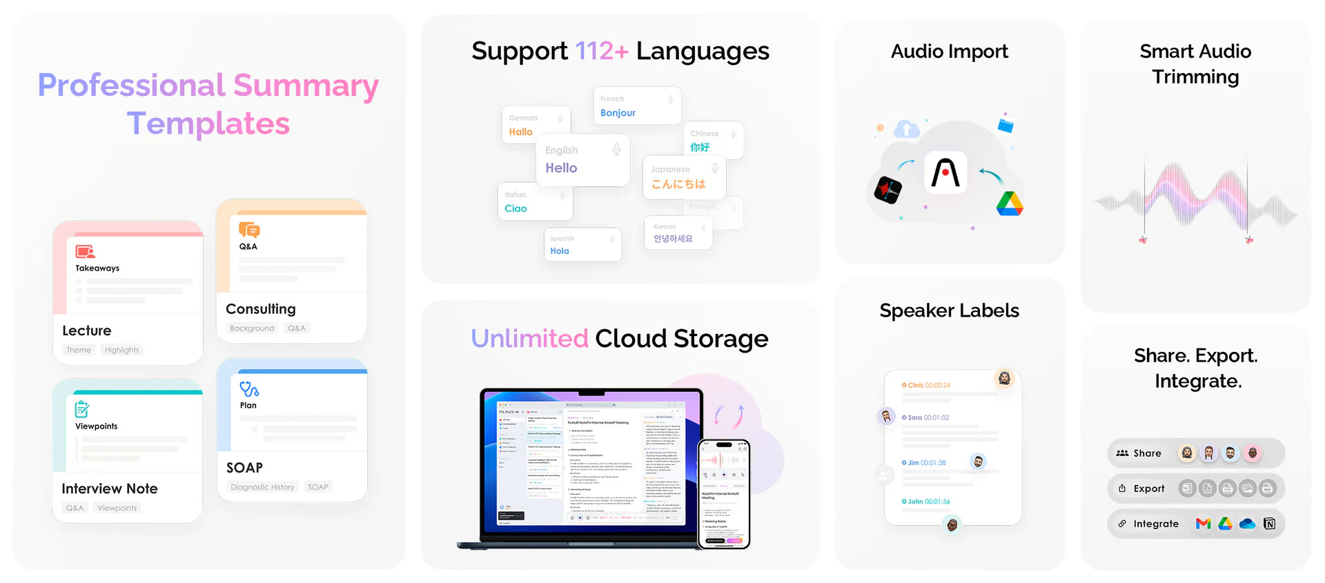 112 Languages | Speaker Labels | Multidimensional Summaries