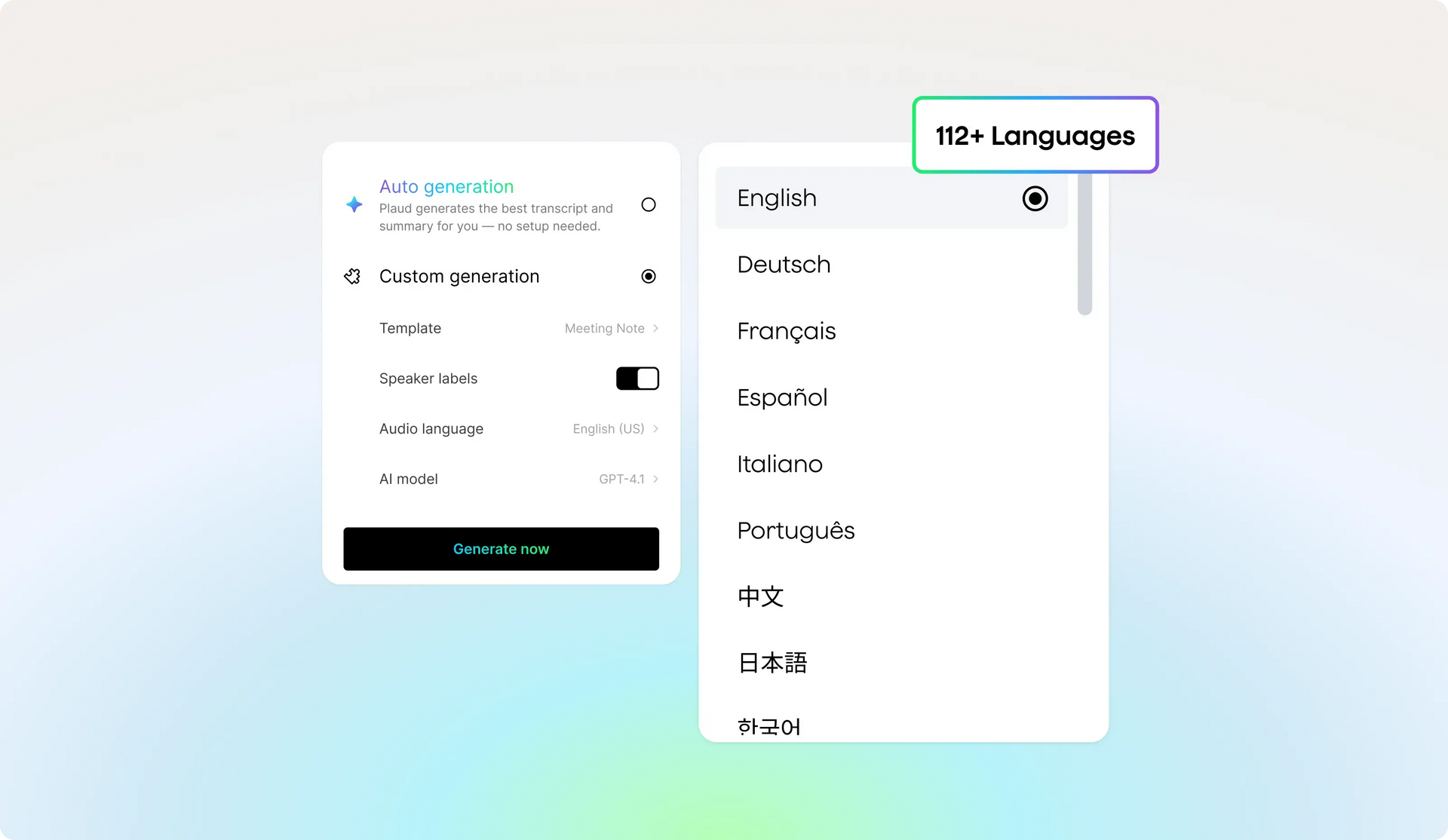 112 Languages | Speaker Labels | Multidimensional Summaries