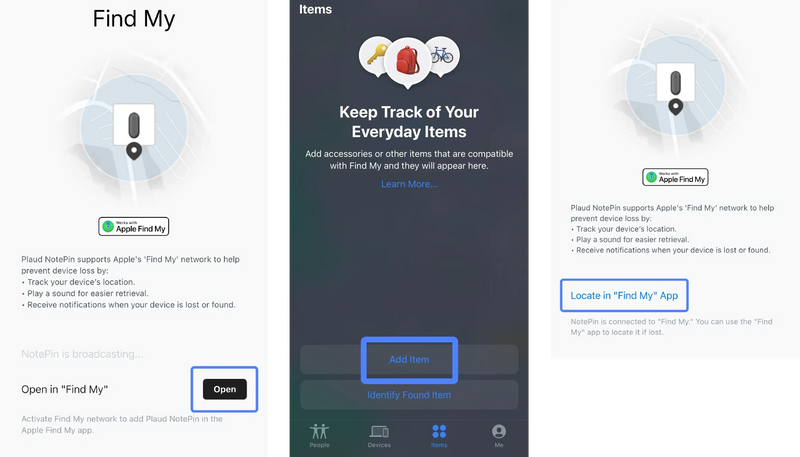 Is the Plaud NotePin compatible with the Find My feature on my iPhone?